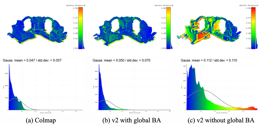 图2 在公开数据集上的影像定向与三维点云精度评价实验结果
