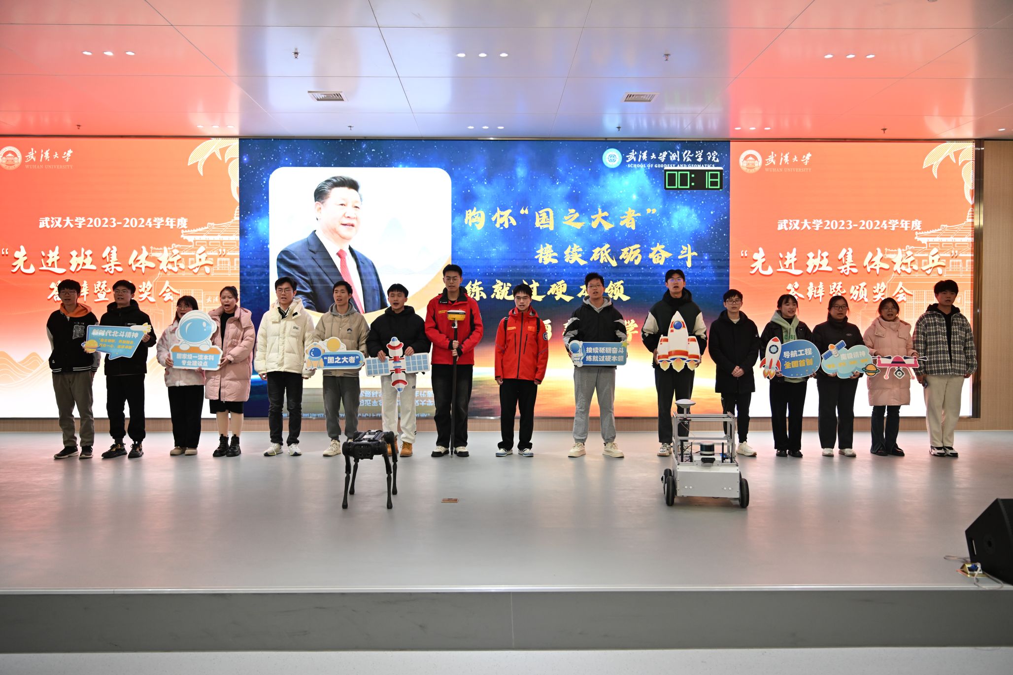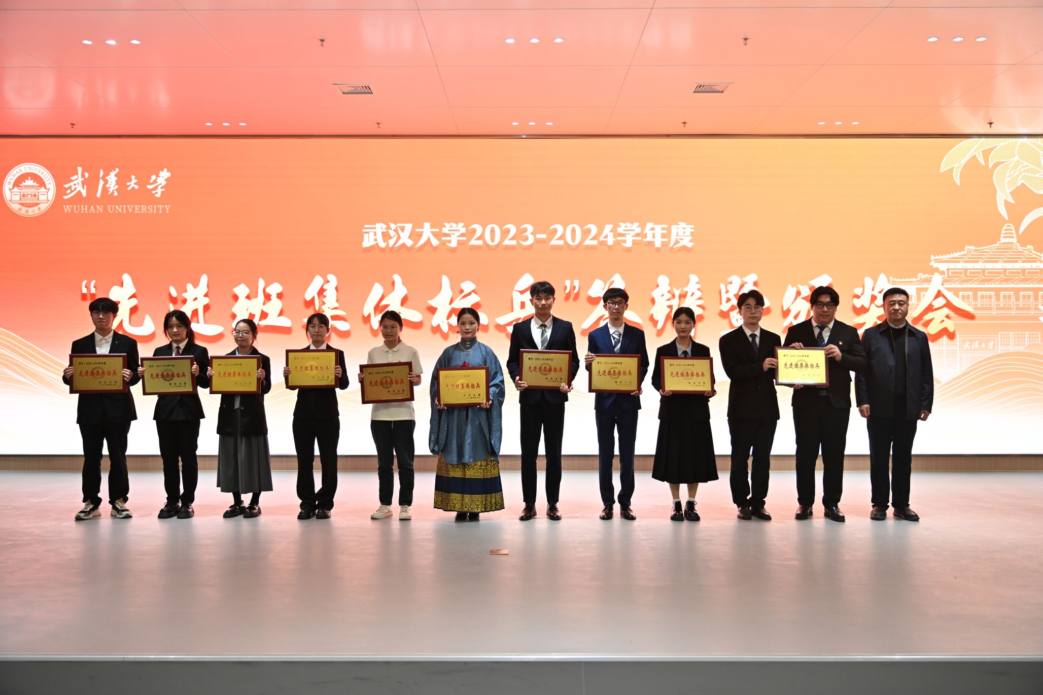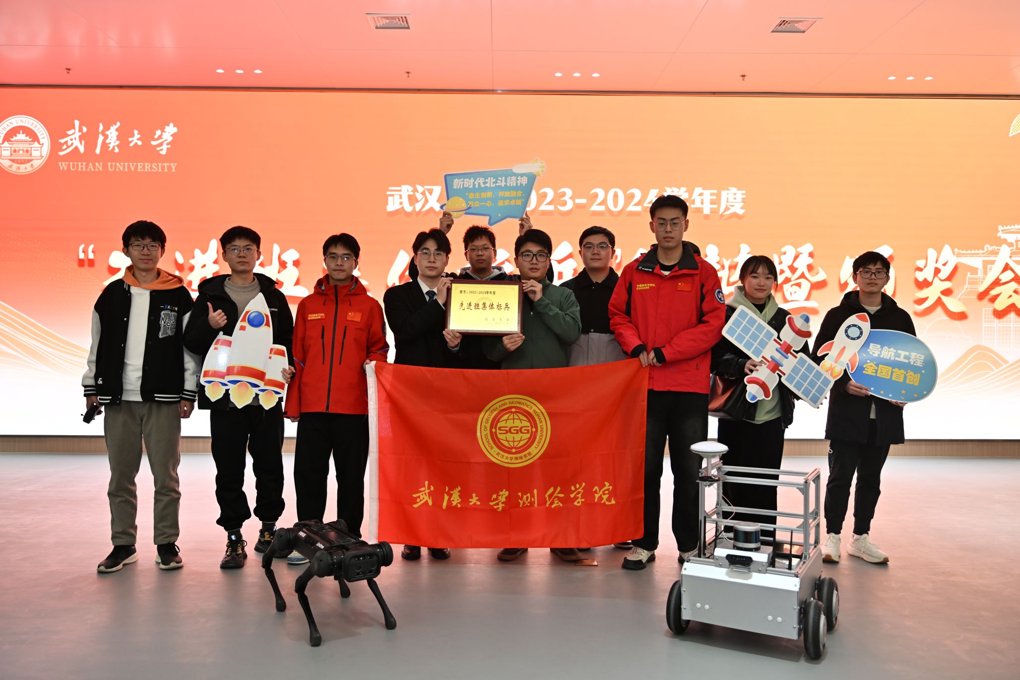 12月12日,武汉大学2023-2024学年度“先进班集体标兵”答辩及颁奖会在雷军科技楼报告厅举行,来自全校19个院系的先进班级展开激烈角逐,最终百家乐论坛 本科生2021级导航工程1班成功获评“先进班集体标兵”,校党委副书记屈文谦出席活动并颁奖。