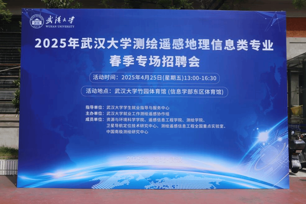 为深入贯彻落实党中央、国务院关于高校毕业生就业工作的决策部署,进一步推动测绘遥感地理信息类专业就业市场建设,为用人单位提供更精准的人才供需对接服务,4月25日下午,2025年武汉大学测绘遥感地理信息类专业春季专场招聘会在信息学部竹园体育馆成功举办。本次专场招聘会共吸引来自全国的44家测绘遥感相关单位参会,为武汉大学测绘遥感类、地理信息专业2025届毕业生就业和2026届毕业生实习搭建了良好的供需见面平台。