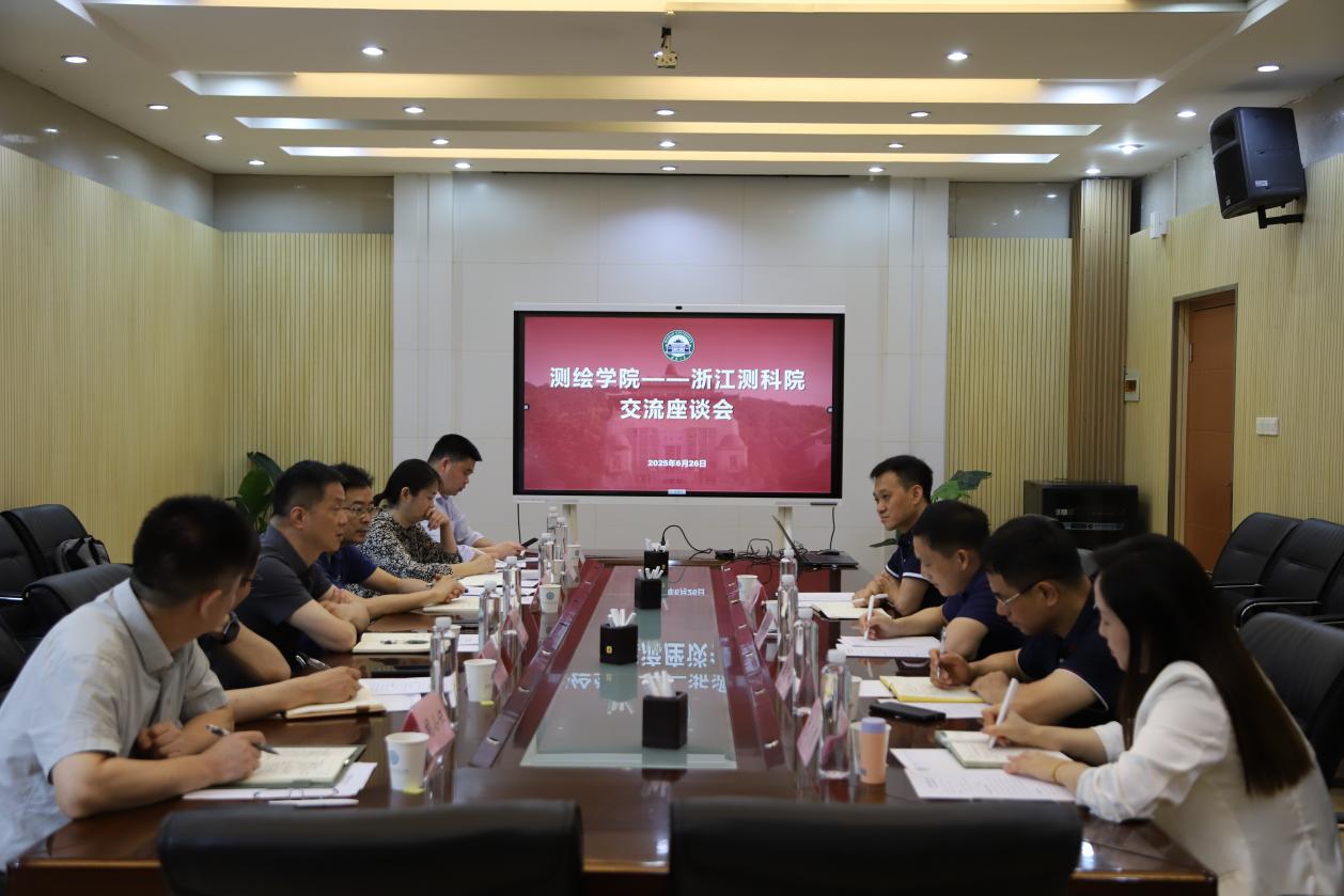 6月26日上午,浙江省测绘科学技术研究院党委书记、院长金利强率队来学院开展调研交流活动。学院院长邹贤才,副院长金涛勇、汪志明,党政办主任刘晓慧参与交流。
