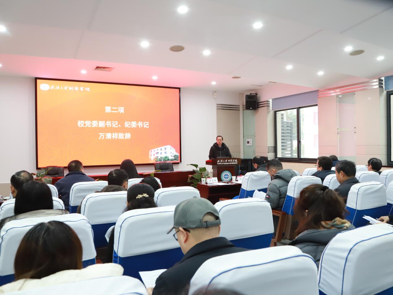 大会在庄严的国歌声中拉开帷幕。校党委副书记、纪委书记万清祥致辞。他首先代表学校党委和行政对会议的召开表示热烈的祝贺,对学院在党的建设、科学研究、人才培养和社会服务等方面取得的突出成绩予以充分肯定,他指出本次教代会的召开,旨在进一步推进学院工作的规范化与制度化建设。围绕更好履行代表职责、凝聚学院发展合力,他提出三点要求:一要充分发挥代表作用,积极建言献策,为学院决策提供坚实支撑;二要紧密联系广大教职工,及时反映意见诉求;三要加强学习,不断提升履职能力与综合素养。