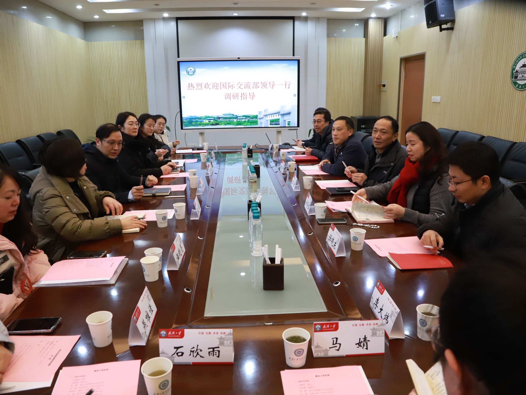 1月20日下午,学校国际交流部部长邓鹤翔、副部长刘晓黎等一行9人来百家乐论坛 调研座谈,精准对接需求,共商发展举措。学院党委书记刘昕、院长邹贤才、副书记胡俊英、副院长李星星、袁强强、任晓东(挂职)及部分教师代表参加座谈会。会议由袁强强主持。