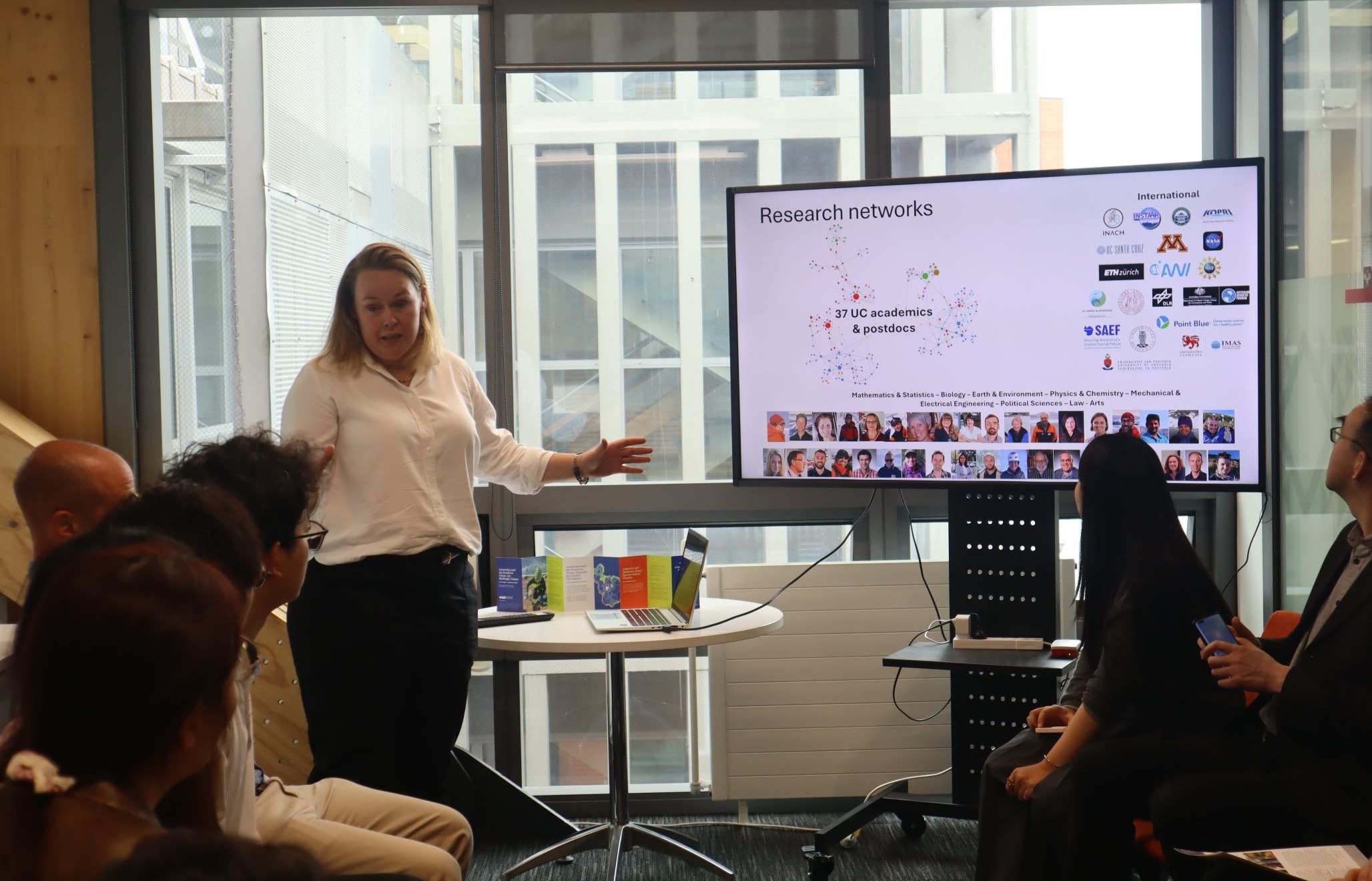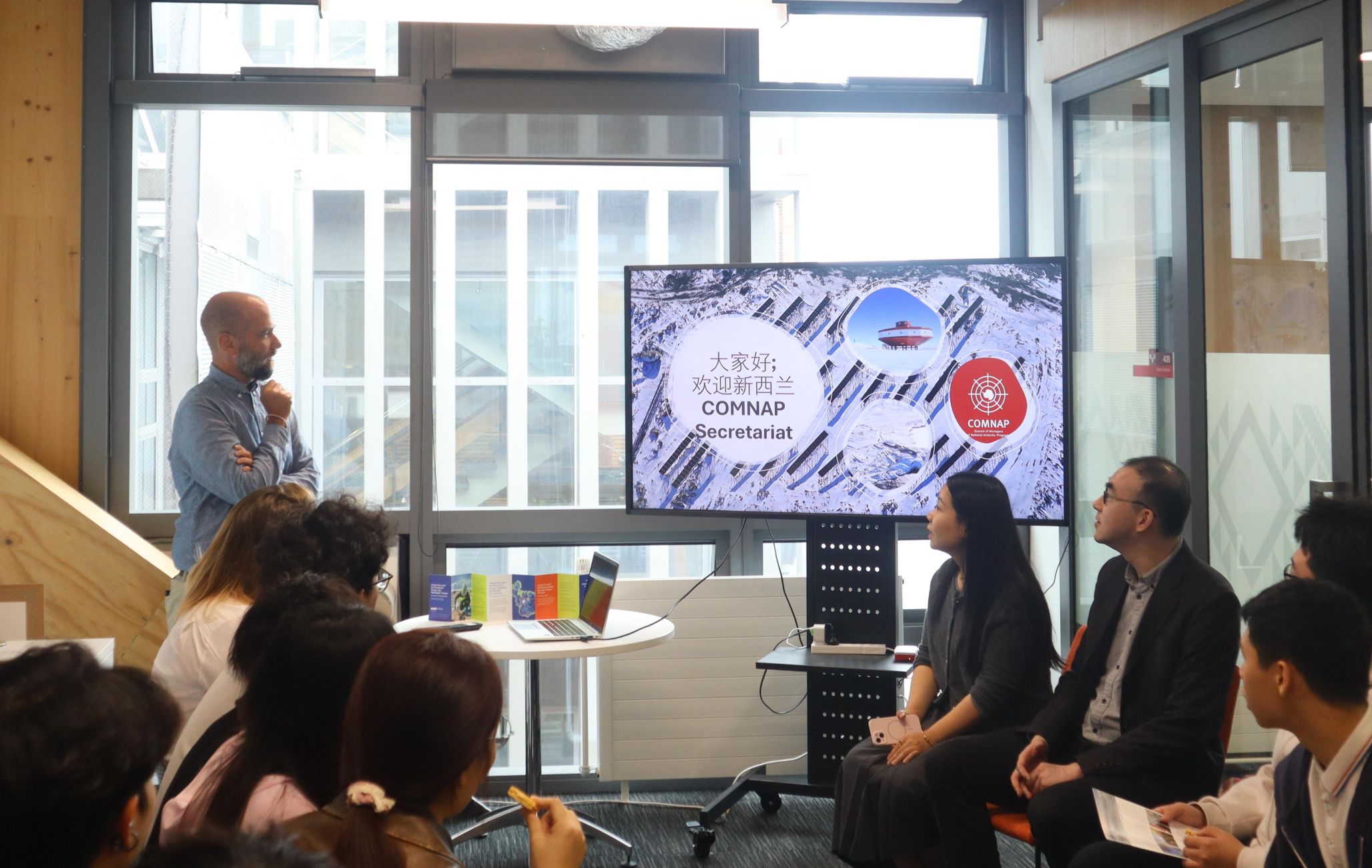 2月24日,实践队前往新西兰坎特伯雷大学地球与环境学院Gateway Antarctica(南极研究中心)与COMNAP(国家南极局局长理事会)秘书处开展调研。坎特伯雷大学地球与环境学院Michelle Rogan-Finnemore、Andrea Conlombo、Mia Wege、Mary Botting、Fiona Hopkins、Xander Cai以及学院研究生代表出席相关活动。